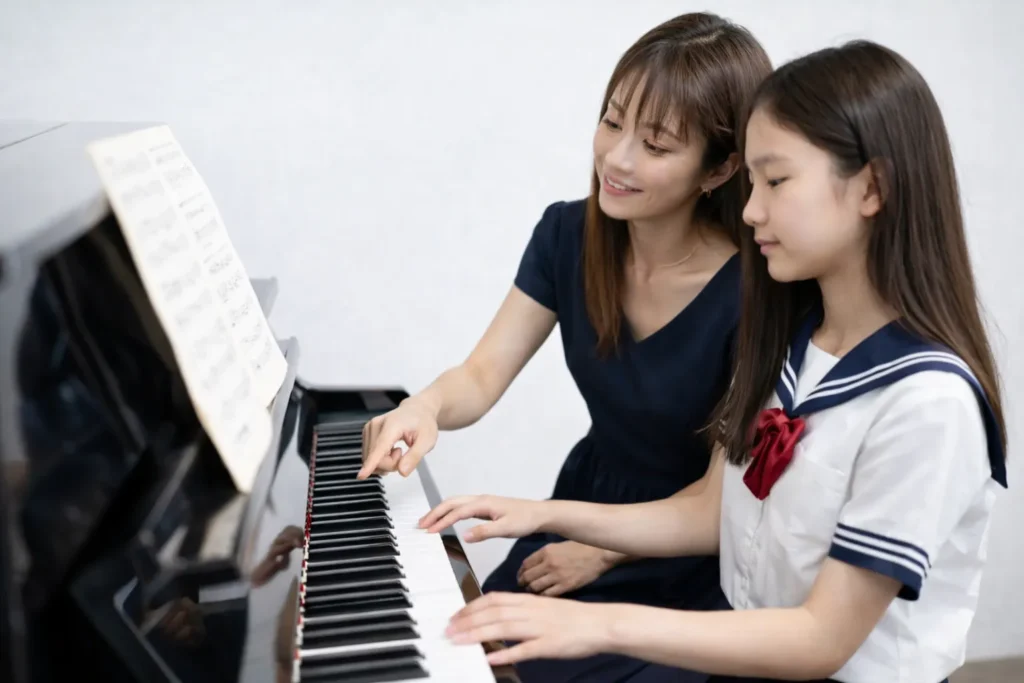 指導の信条は、「ただ弾くだけでなく、聴く・歌うを取り入れる」こと。ピアノは指の運動ではなく、音楽を表現する楽器です。そのため、レッスンでは楽曲の背景にある物語や作曲家の意図を理解することを大切にしています。